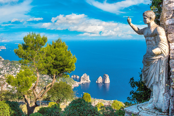 Transfert le matin jusqu’au port de Sorrente en minibus et embarquement pour l'Ile de Capri. Découverte de l’île et visite de la Villa San Michele à Anacapri. Déjeuner au restaurant. L’après-midi, promenade aux jardins d’Auguste et petit temps libre. En fin d’après-midi, retour en bateau, dîner et logement à l’hôtel.