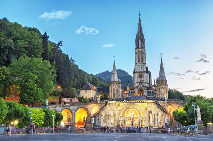 Route en direction des Pyrénées. Arrivée à l’hôtel en fin de matinée et installation dans les chambres. Accueil par votre guide local pour la durée du séjour. Déjeuner à l’hôtel. Après-midi, visite guidée du Sanctuaire de Lourdes, l’un des plus grands lieux de pèlerinage au monde. Croyant ou non, l’atmosphère est propice au recueillement et à la réflexion, à la prière ou à la méditation. Apéritif de bienvenue, dîner et logement à l’hôtel.