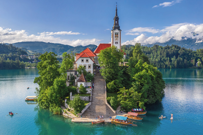 Départ pour le Lac de Bohinj, situé au fond d’une vallée glaciaire au cœur des Alpes juliennes, partie du Parc National du Mont Triglav. Détente pour profiter des paysages puis traversée des villages fleuris aux caractéristiques séchoirs à foin. Déjeuner dans une auberge à Radovljica, petite bourgade médiévale. Découverte du charmant Lac de Bled, carte postale du pays avec en son milieu l’îlot de la Vierge. Retour à l’hôtel, dîner et logement.